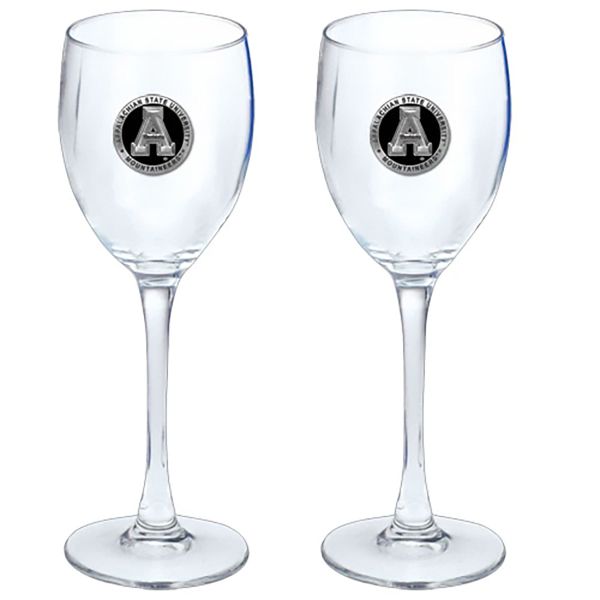 Appalachian State Mountaineers Wine Goblet 15oz Set of 2 - Black Medallion