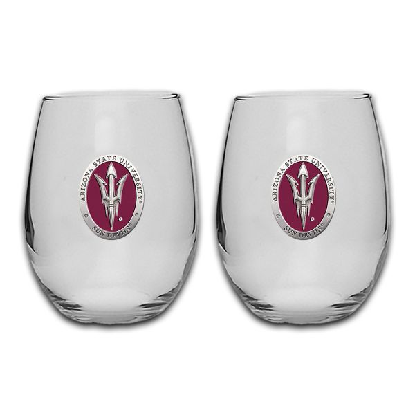 Arizona State-Pitchfork Logo - Stemless Wine Goblet 12oz Set of 2