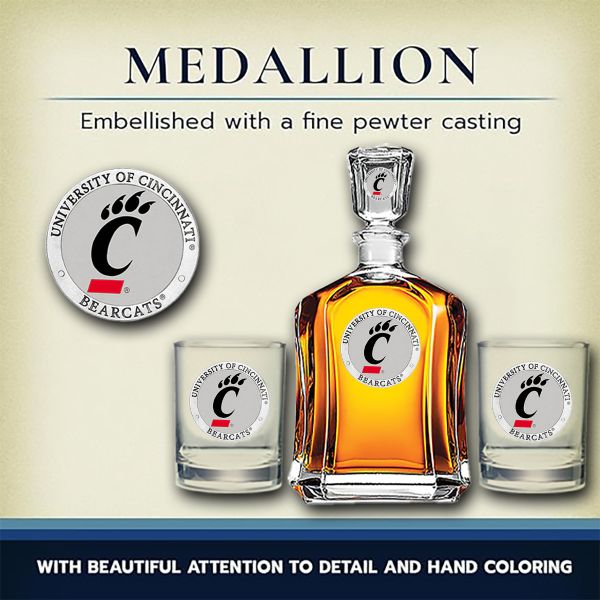 Cincinnati Bearcats - Capitol Decanter with 2 Double Old Fashioned Glasses