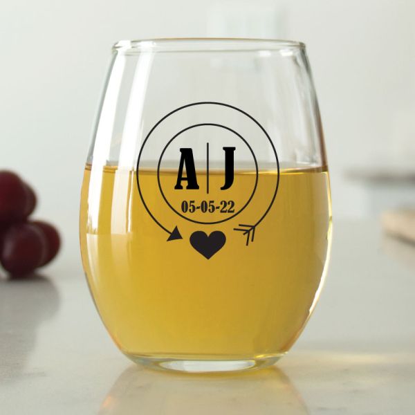 Circle Heart Monogram - 9 oz. ARC Perfection Stemless Wine Glasses