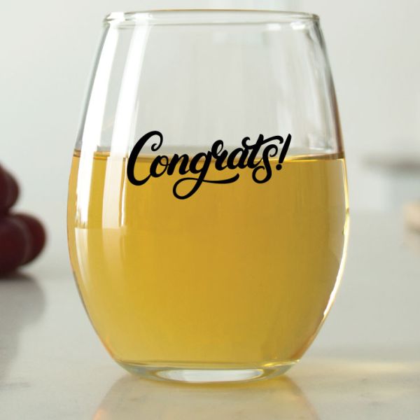 Congrats!- 9 oz. ARC Perfection Stemless Wine Glasses