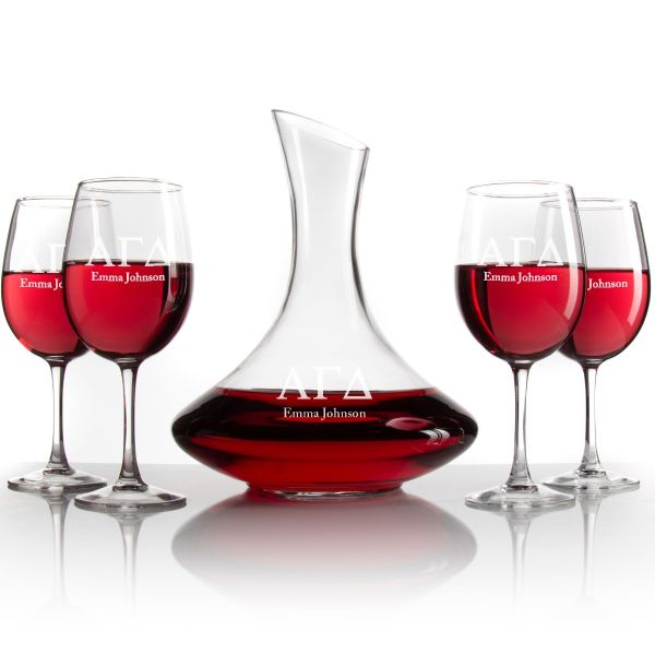 Custom Engraved Alpha Gamma Delta - Slanted Top Wine Decanter With Stem Wine Glasses