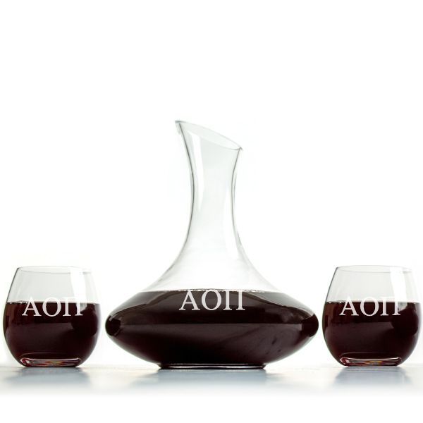 Custom Engraved Alpha Omicron Pi - Slanted Top Wine Decanter With Wine Glasses