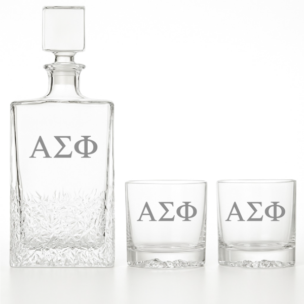 Custom Engraved Alpha Sigma Phi - Personalized Excalibur Decanter Set with Whiskey Glasses