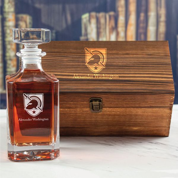 Custom Engraved Army West Point - Personalized Whiskey Decanter In Wood Gift Box