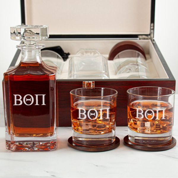 Custom Engraved Beta Theta Pi - Personalized Whiskey Decanter Set In Cherry Wood Gift Box