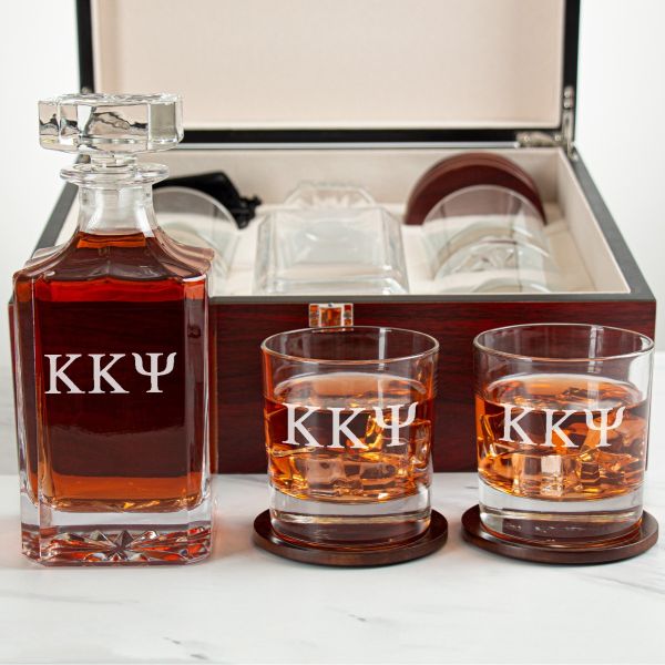 Custom Engraved Kappa Kappa Psi - Personalized Whiskey Decanter Set In Cherry Wood Gift Box