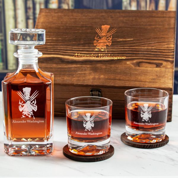 Custom Engraved Logan - Personalized Whiskey Decanter Set In Wood Gift Box