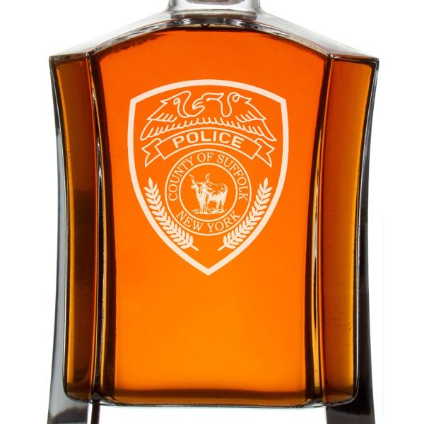 Custom Engraved Police Badges - Custom Crown Decanter Set - County of Suffolk NY Police Patch