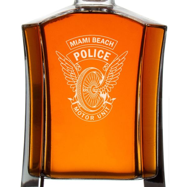 Custom Engraved Police Badges - Custom Crown Decanter Set - Miami Police Motor Unit Winged Wheel