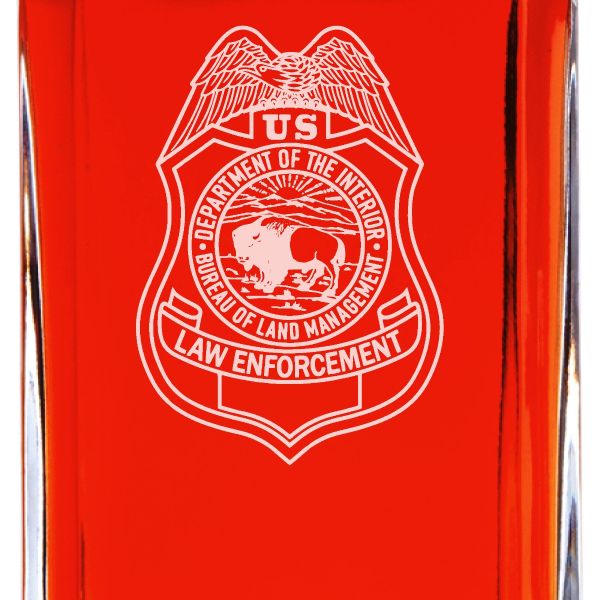 Custom Engraved - Police Badges - Personalized Whiskey Decanter In Wood Gift Box - Dept of Interior Bureau of Land Management Badge