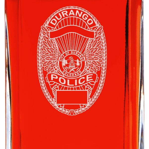Custom Engraved - Police Badges - Personalized Whiskey Decanter In Wood Gift Box - Durango CO Police Badge