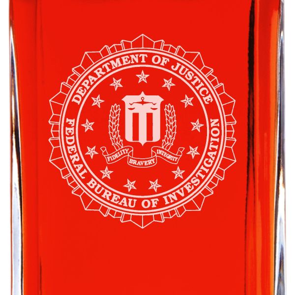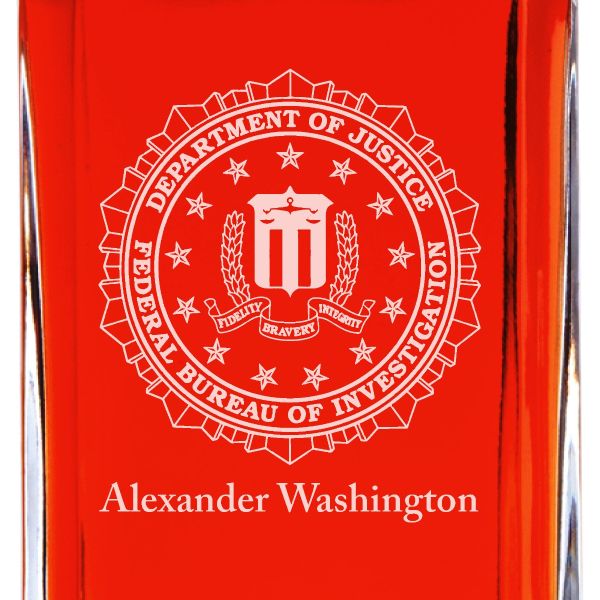 Custom Engraved - Police Badges - Personalized Whiskey Decanter In Wood Gift Box - FBI Patch