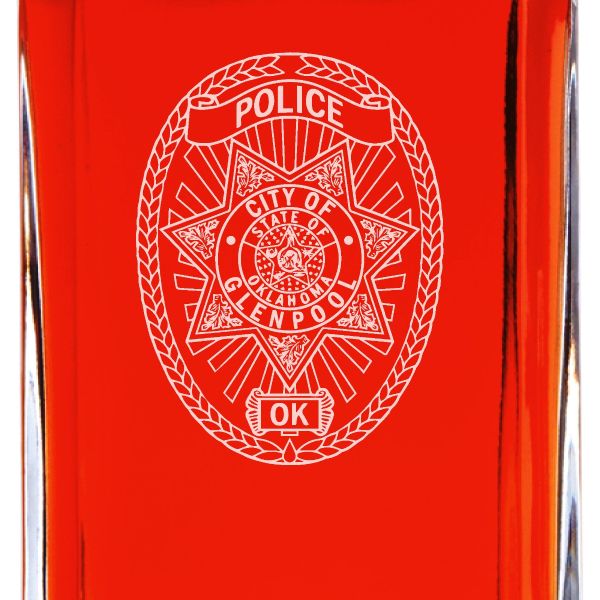 Custom Engraved - Police Badges - Personalized Whiskey Decanter In Wood Gift Box - Glenpool OK Police Badge