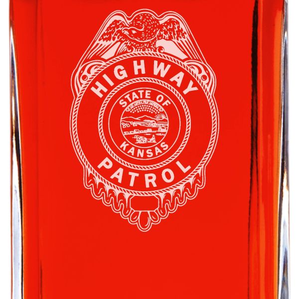 Custom Engraved - Police Badges - Personalized Whiskey Decanter In Wood Gift Box - Highway Patrol State of Kansas Badge