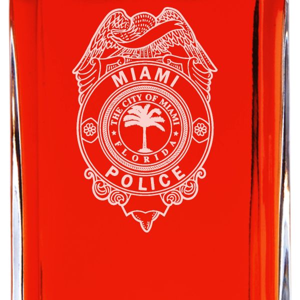 Custom Engraved - Police Badges - Personalized Whiskey Decanter In Wood Gift Box - Miami Police Badge