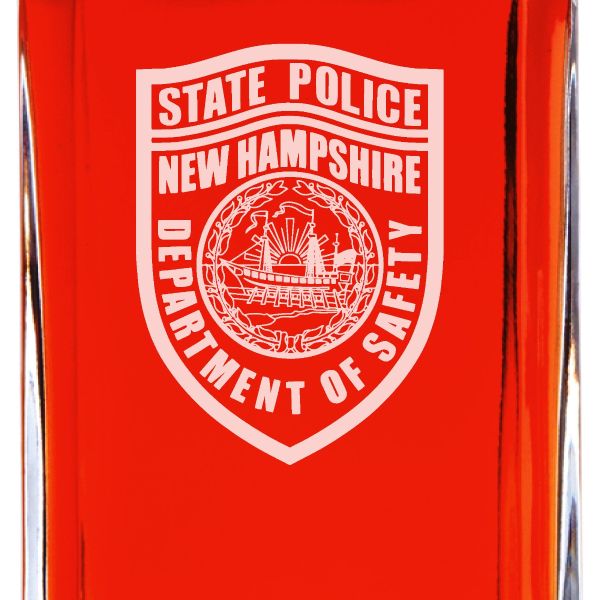 Custom Engraved - Police Badges - Personalized Whiskey Decanter In Wood Gift Box - State Police New Hampshire Patch