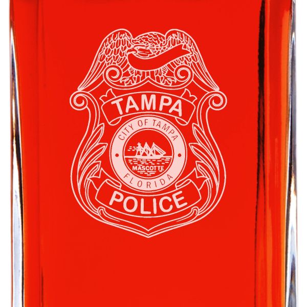 Custom Engraved - Police Badges - Personalized Whiskey Decanter In Wood Gift Box - Tampa Police Badge