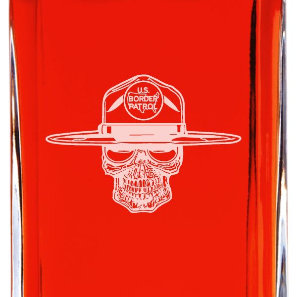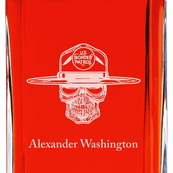 Custom Engraved - Police Badges - Personalized Whiskey Decanter In Wood Gift Box - US Border Patrol Skull