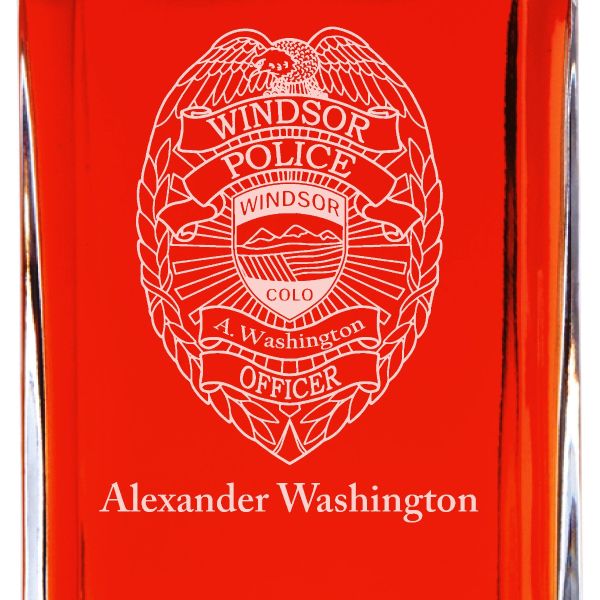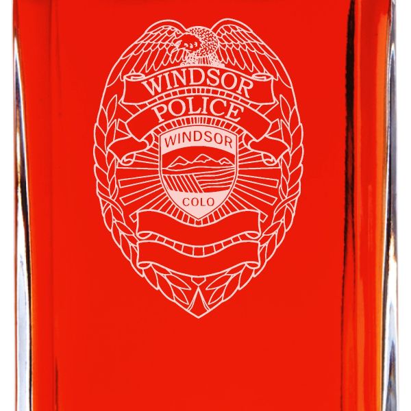 Custom Engraved - Police Badges - Personalized Whiskey Decanter In Wood Gift Box - Windsor CO Police Badge