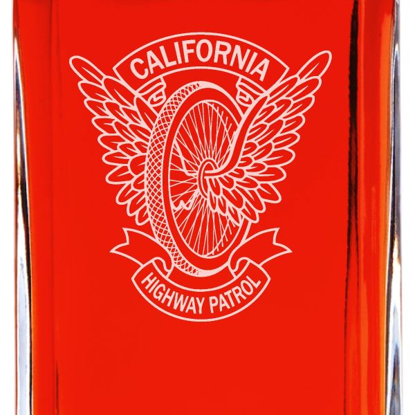 Custom Engraved Police Badges - Personalized Whiskey Decanter Set In Wood Gift Box - California Highway Patrol Winged Wheel