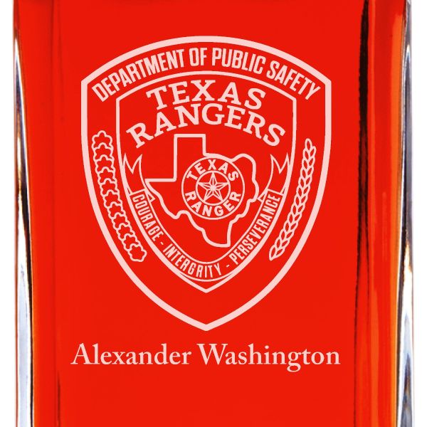 Custom Engraved Police Badges - Personalized Whiskey Decanter Set In Wood Gift Box - Dept of Public Safety Texas Rangers Patch