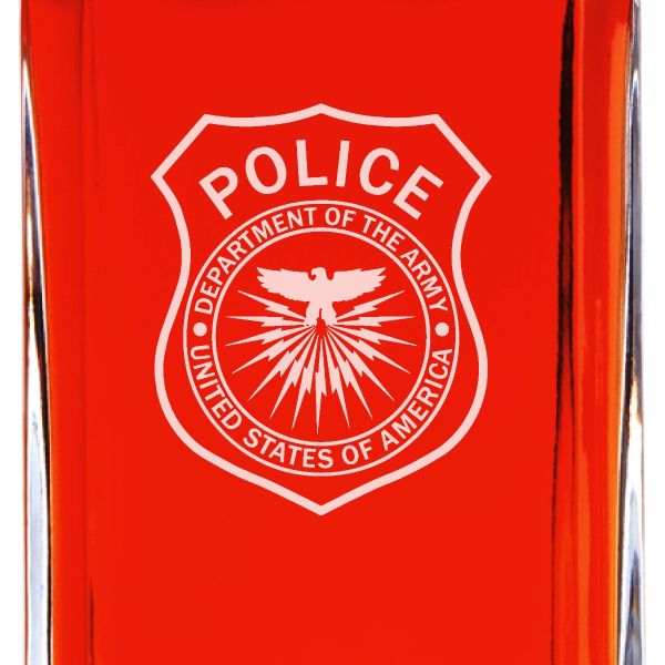 Custom Engraved Police Badges - Personalized Whiskey Decanter Set In Wood Gift Box - Dept. of the Army Police Badge