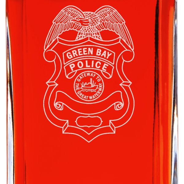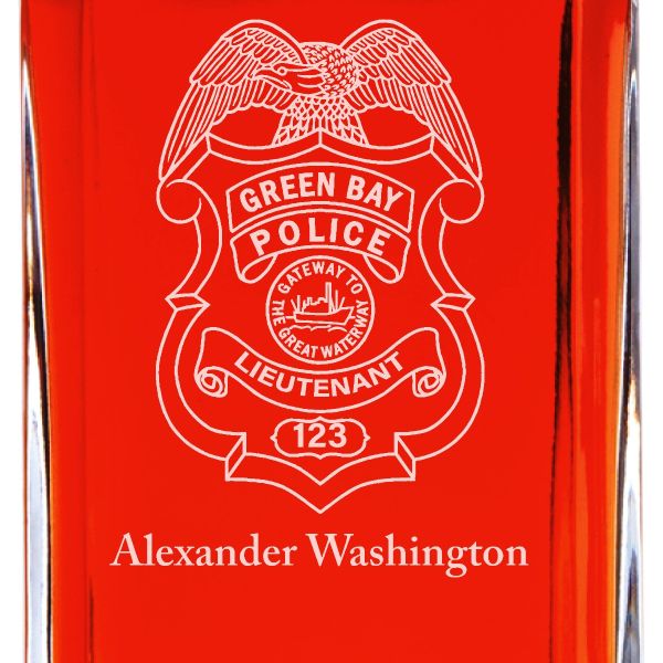 Custom Engraved Police Badges - Personalized Whiskey Decanter Set In Wood Gift Box - Green Bay WI Police Badge
