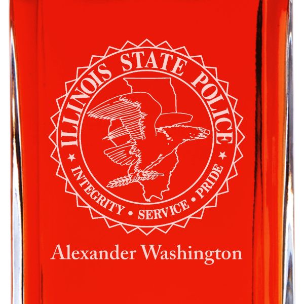 Custom Engraved Police Badges - Personalized Whiskey Decanter Set In Wood Gift Box - Illinois State Police Patch