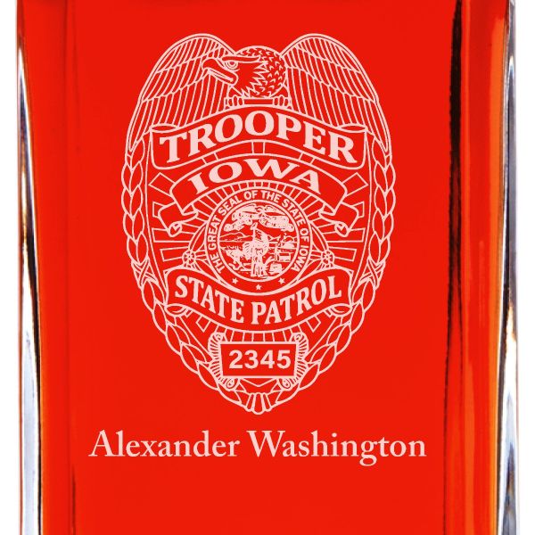 Custom Engraved Police Badges - Personalized Whiskey Decanter Set In Wood Gift Box - Iowa State Patrol Badge