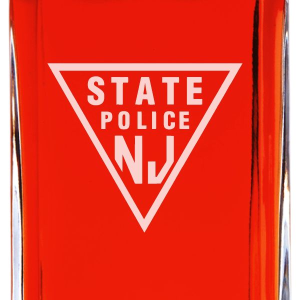 Custom Engraved Police Badges - Personalized Whiskey Decanter Set In Wood Gift Box - New Jersey State Police Patch
