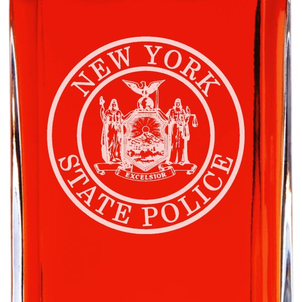 Custom Engraved Police Badges - Personalized Whiskey Decanter Set In Wood Gift Box - New York State Police Patch