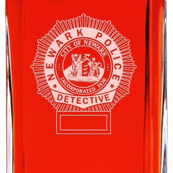 Custom Engraved Police Badges - Personalized Whiskey Decanter Set In Wood Gift Box - Newark NJ Police Detective Badge