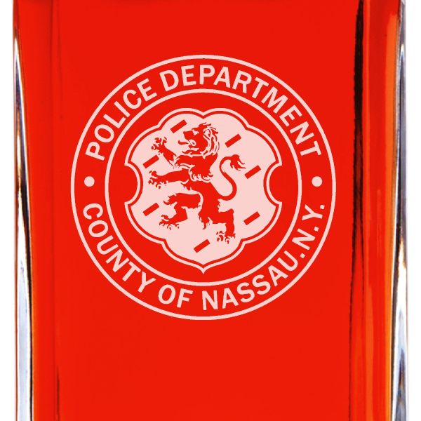 Custom Engraved Police Badges - Personalized Whiskey Decanter Set In Wood Gift Box - Police Dept County of Nassau NY Patch