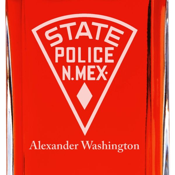 Custom Engraved Police Badges - Personalized Whiskey Decanter Set In Wood Gift Box - State Police New Mexico Patch