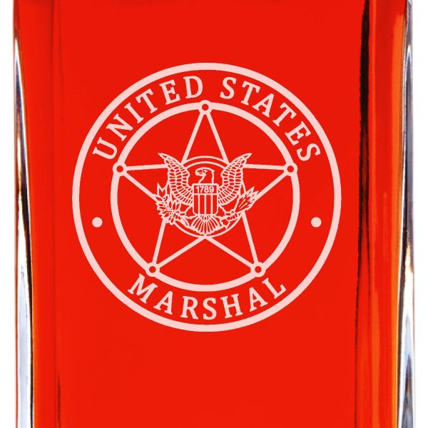 Custom Engraved Police Badges - Personalized Whiskey Decanter Set In Wood Gift Box - United States Marshal Badge