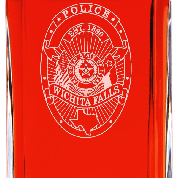 Custom Engraved Police Badges - Personalized Whiskey Decanter Set In Wood Gift Box - Wichita Falls TX Police Badge