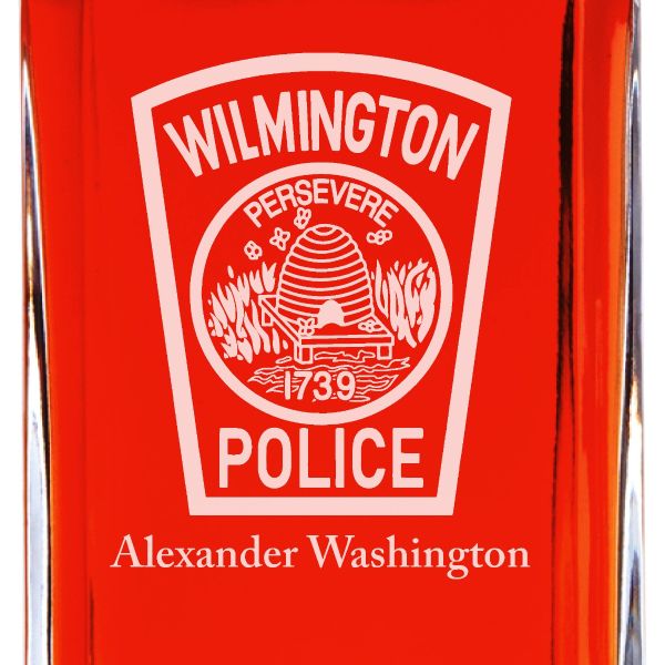 Custom Engraved Police Badges - Personalized Whiskey Decanter Set In Wood Gift Box - Wilmington Police Patch