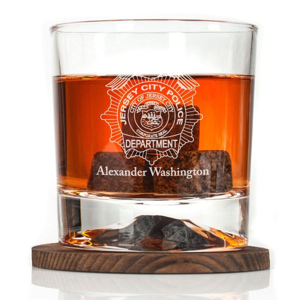 Custom Engraved - Police Badges - Personalized Whiskey Glasses In Wood Gift Box-Jersey City Police Badge