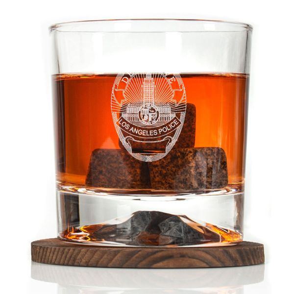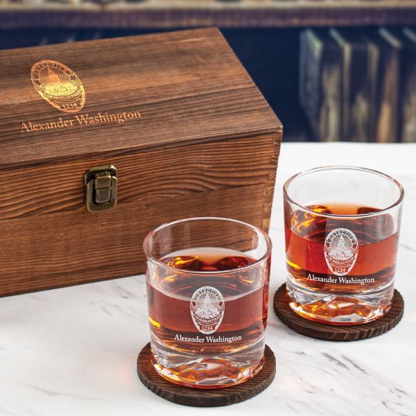 Custom Engraved - Police Badges - Personalized Whiskey Glasses In Wood Gift Box-LA Detective Police Badge