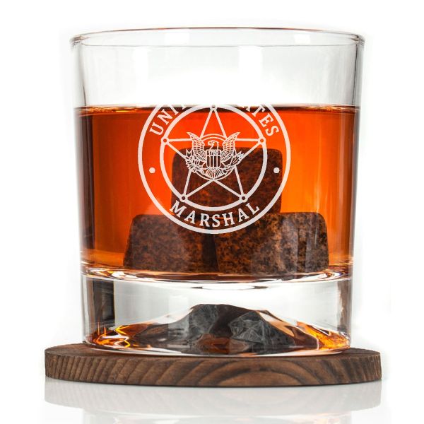 Custom Engraved - Police Badges - Personalized Whiskey Glasses In Wood Gift Box - United States Marshal Badge