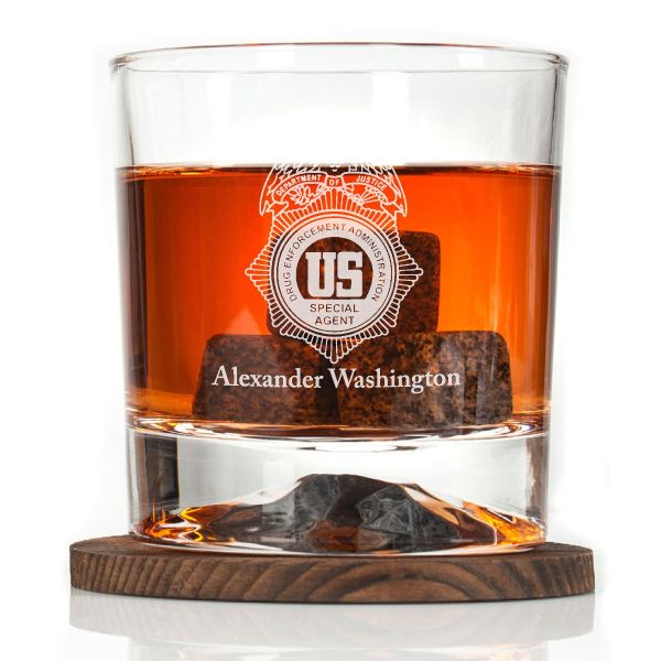 Custom Engraved - Police Badges - Personalized Whiskey Glasses In Wood Gift Box - US DEA Badge