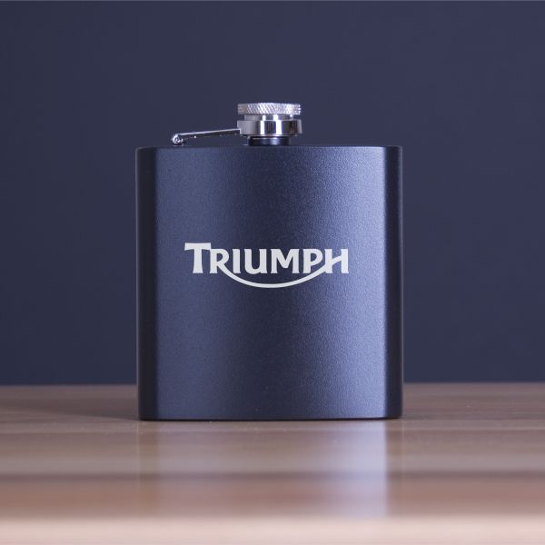 Custom Engraved Triumph Logo - Personalized 6oz Matte Black Powder Coated Stainless Steel FSK602