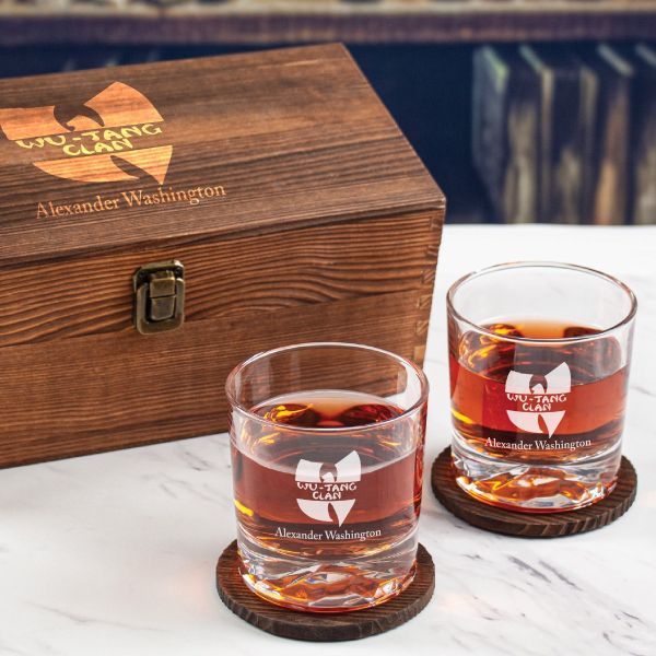 Custom Engraved Wu-Tang Clan - Personalized Whiskey Glasses In Wood Gift Box