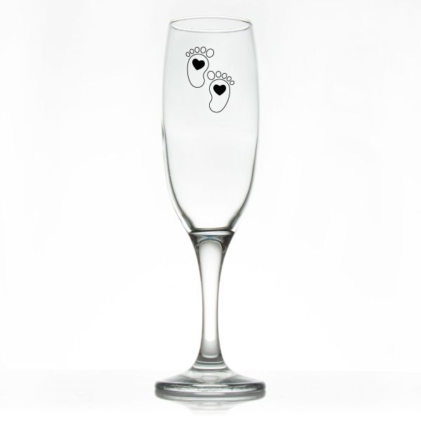 Custom Personalized Champagne Flutes - Cartoon Baby Feet with Heart - Promotional Champagne Flutes In Bulk is available to buy in increments of 12