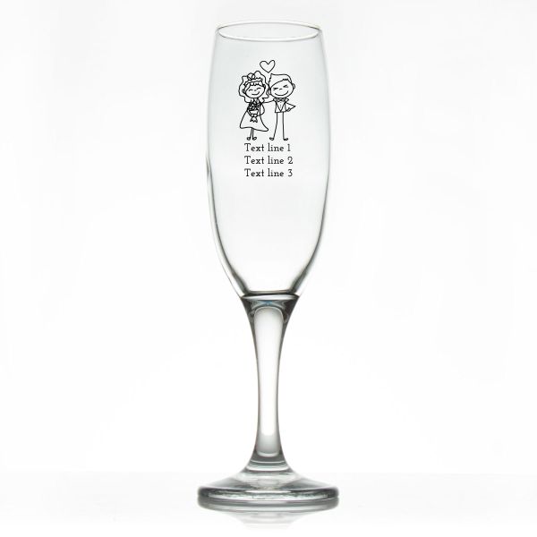 Custom Personalized Champagne Flutes - Stick Figure Bride and Groom - Promotional Champagne Flutes In Bulk is available to buy in increments of 12