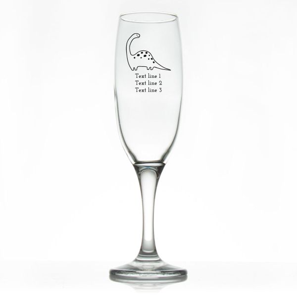 Custom Personalized Champagne Flutes - Cute Brontosaurus - Promotional Champagne Flutes In Bulk is available to buy in increments of 12