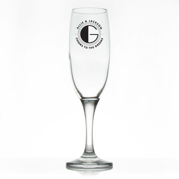Custom Personalized Champagne Flutes - Deco Initial Stamp - Promotional Champagne Flutes In Bulk