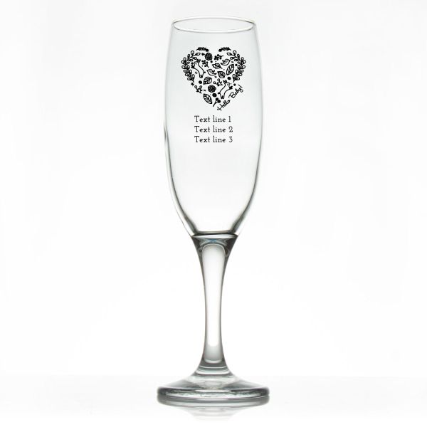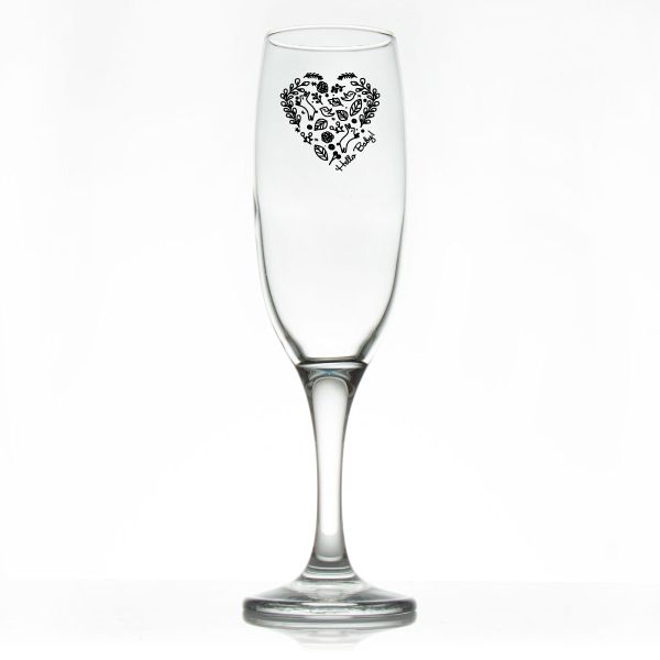 Custom Personalized Champagne Flutes - Hello Baby Heart - Promotional Champagne Flutes In Bulk is available to buy in increments of 12