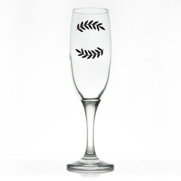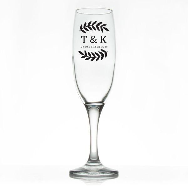 Custom Personalized Champagne Flutes - Laurel Leaf Large Type Initials - Promotional Champagne Flutes In Bulk is available to buy in increments of 12